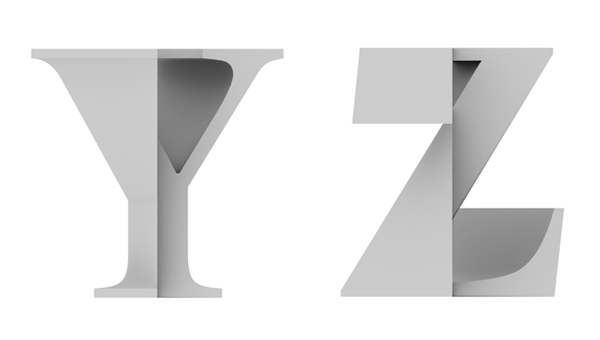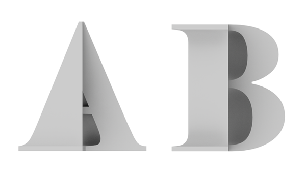 Typography divided vertically.